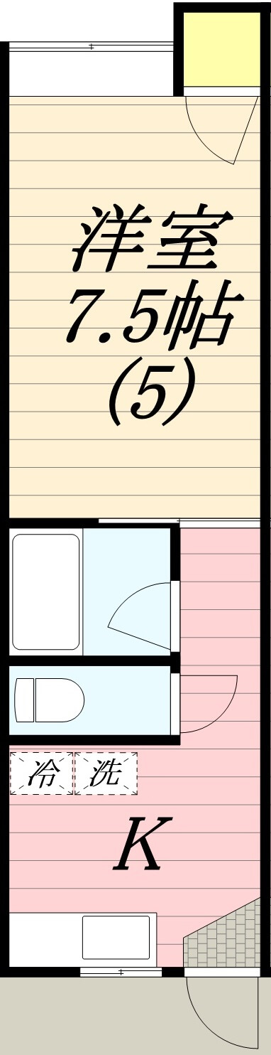 洋室7.5帖の1Kタイプです。